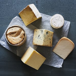 Four classic British cheeses. These versions are still made on the farm, traditionally cloth-bound and aged to perfection: supreme examples of the historic British cheeses. Britain at its best.
